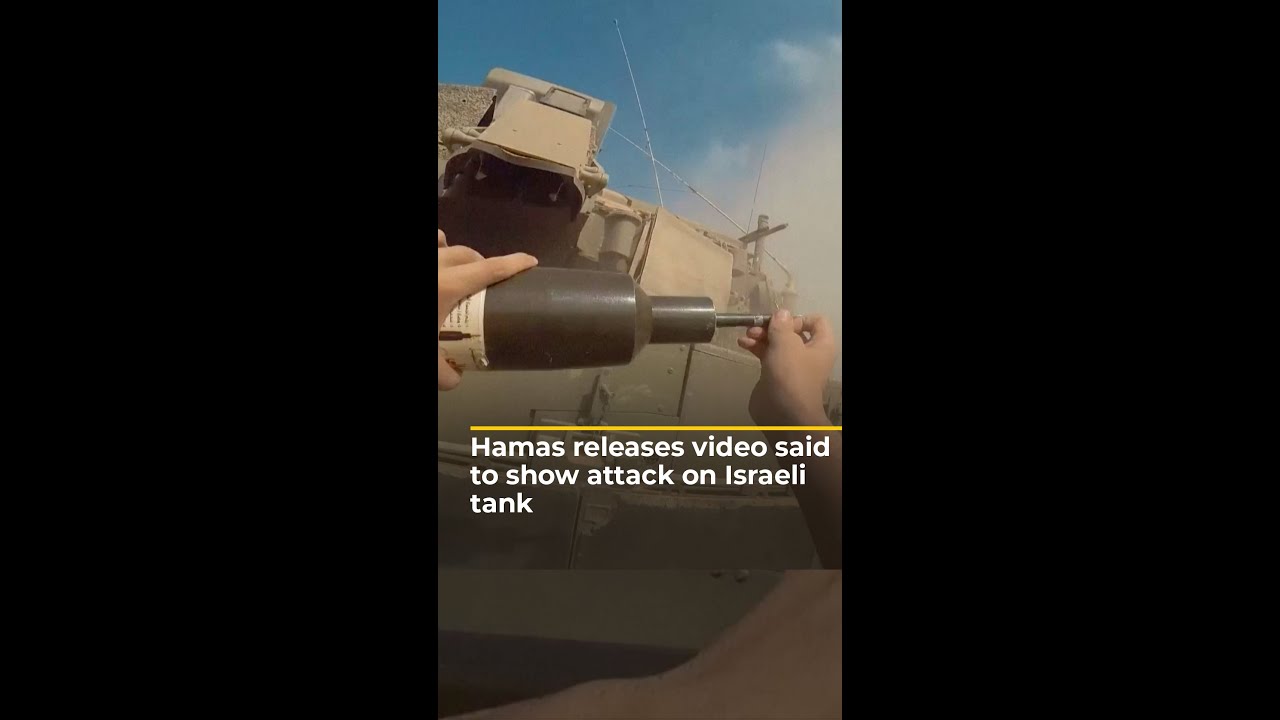 The military wing of Hamas has released a bodycam video it says shows one of their fighters attacking an Israeli tank in Gaza by placing an explosive device on it before firing at it.