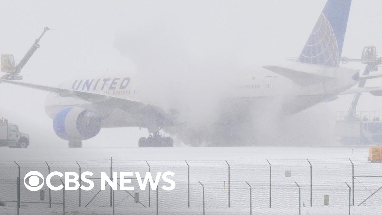 Cross-country storms have caused nearly 8,000 flight delays and more than 2,300 cancellations. CBS News national correspondent Nikki Battiste reports from LaGuardia Airport in New York City.