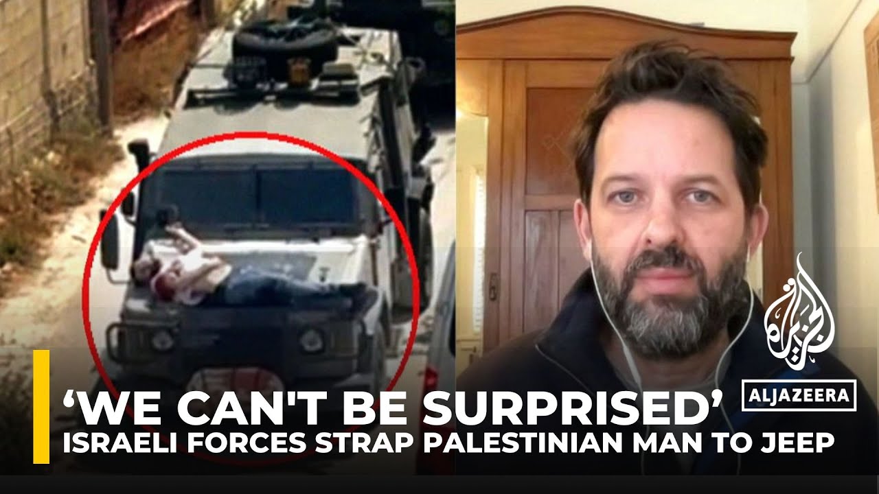 a video has emerged showing an injured Palestinian tied to the front of an Israeli military vehicle after a raid in Jenin. It appears he’s being used as a human shield. In a statement to Al Jazeera, the Israeli army says the suspect was apprehended in violation of orders, and standard operating procedures.