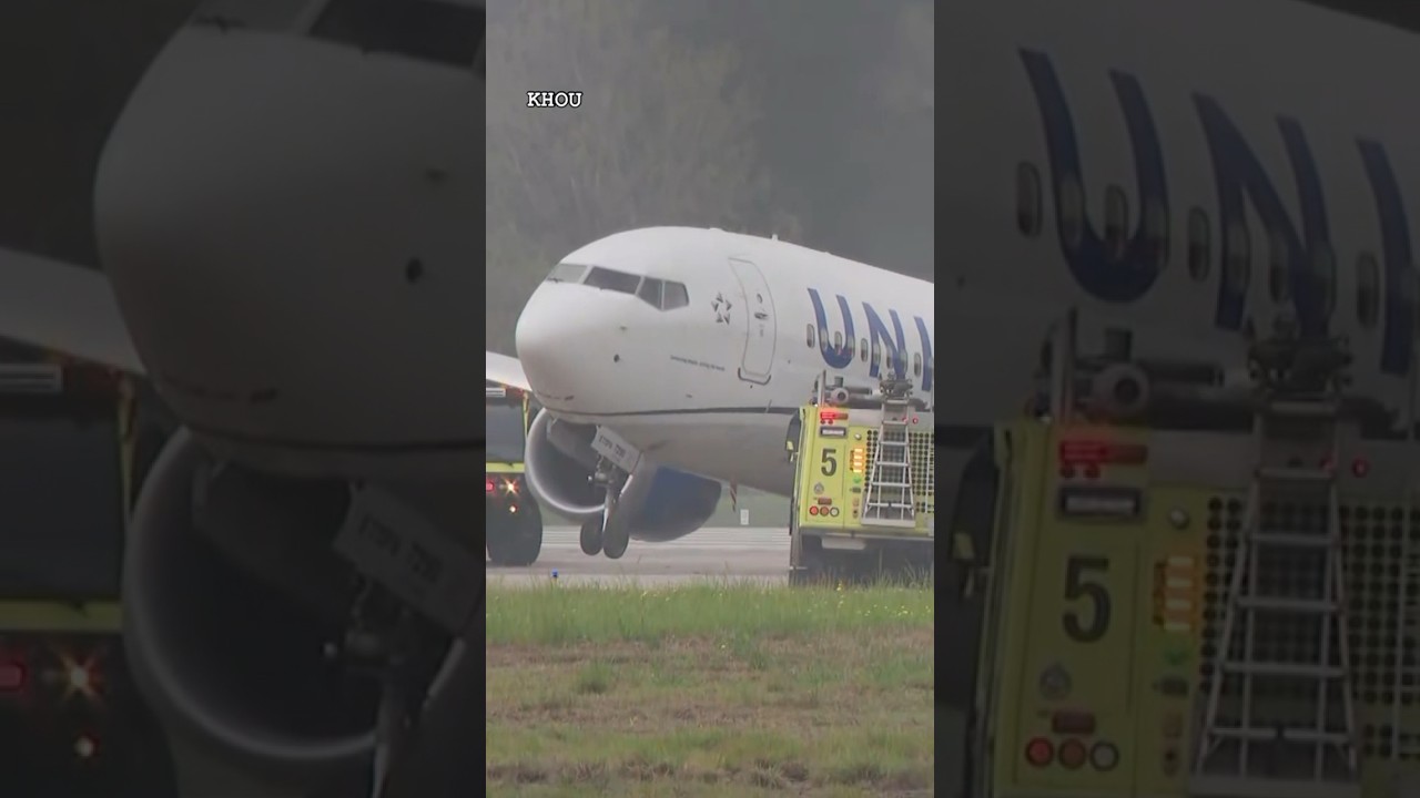 United Airlines plane rolls off runway in Houston after landing #shorts